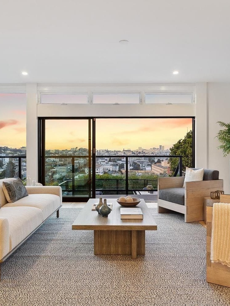 Perched in sunny, sought-after Dolores Heights, this stately Edwardian has been thoughtfully modernized to embrace the breathtaking views and lovely light that define the location. The main living level features a spacious living room with floor-to-ceiling windows framing the hills, a contemporary kitchen with center island and additional eating area, a formal dining room, and a half bath. Off the living room, a balcony leads to a massive sun-filled deck with sightlines to the downtown skyline—ideal for both everyday enjoyment and grand entertaining. Upstairs, the primary bedroom stuns with vaulted ceilings and impressive outlooks at every turn, complemented by a walk-in closet and en-suite bath. Two additional bedrooms and a full bath complete the upper floor. The lower level includes an office, family room, full bath, and a bedroom with deck access and its own separate entrance—perfect for guests. Steps to Dolores Park, the Mission, and the Castro.