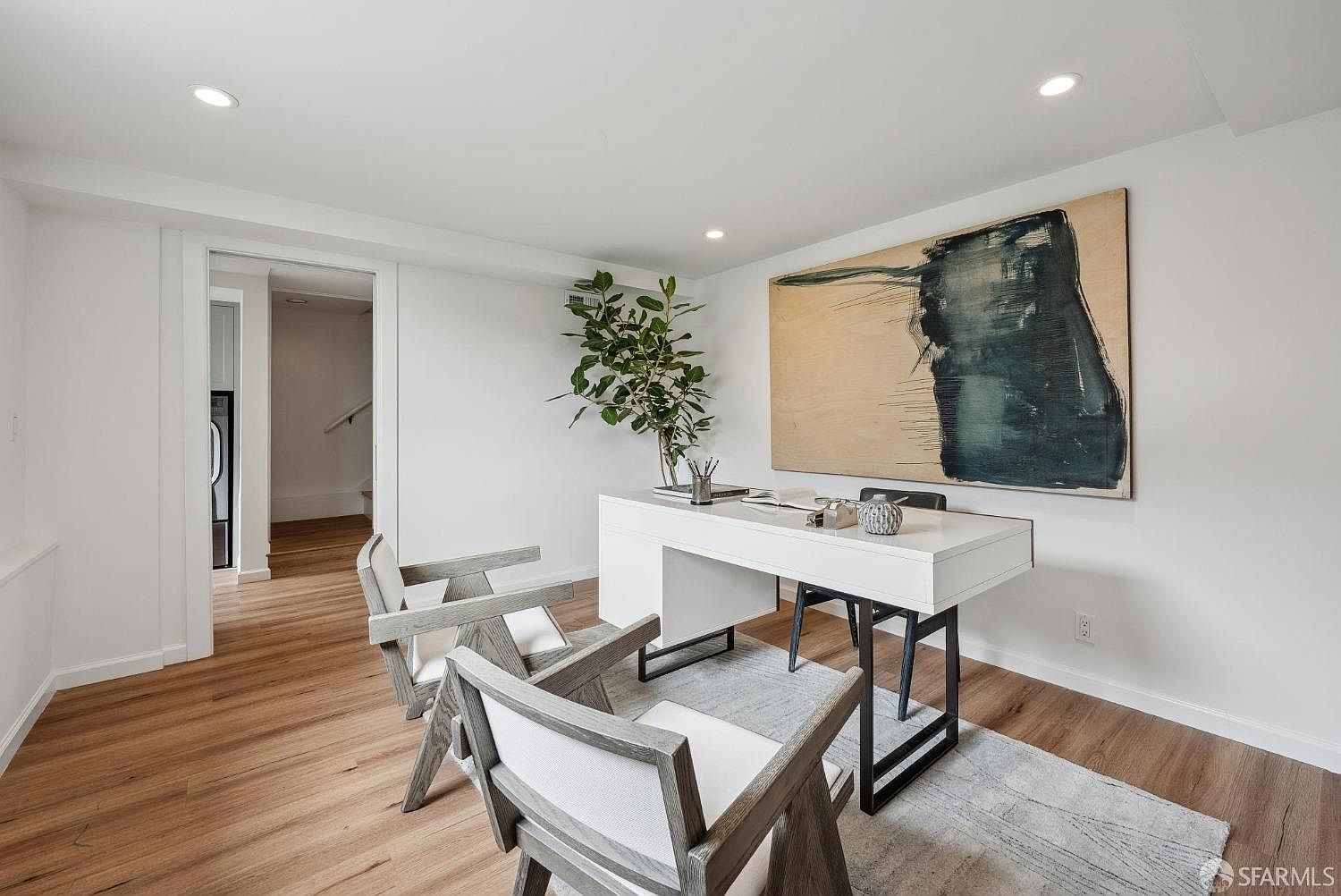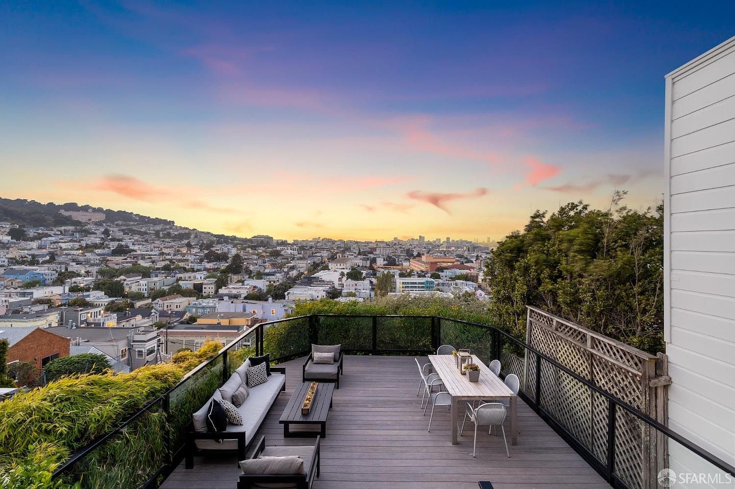Floor-to-ceiling windows frame the hills while a massive sun-filled deck commands downtown skyline views that make every evening feel like an event. The separate lower-level entrance creates a true guest suite—a rarity in Dolores Heights.