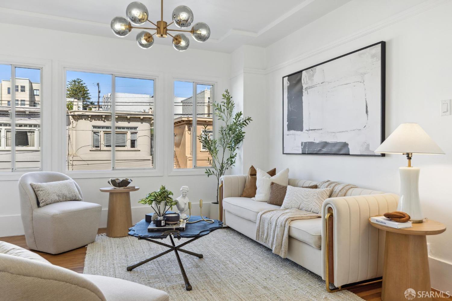 The backyard overflows with fruit trees, herbs, and fragrant flowers—a rare find in the Richmond. East-facing bedrooms catch the morning sun while the slow-street setting provides a daily tranquility that's hard to find this close to Golden Gate Park.